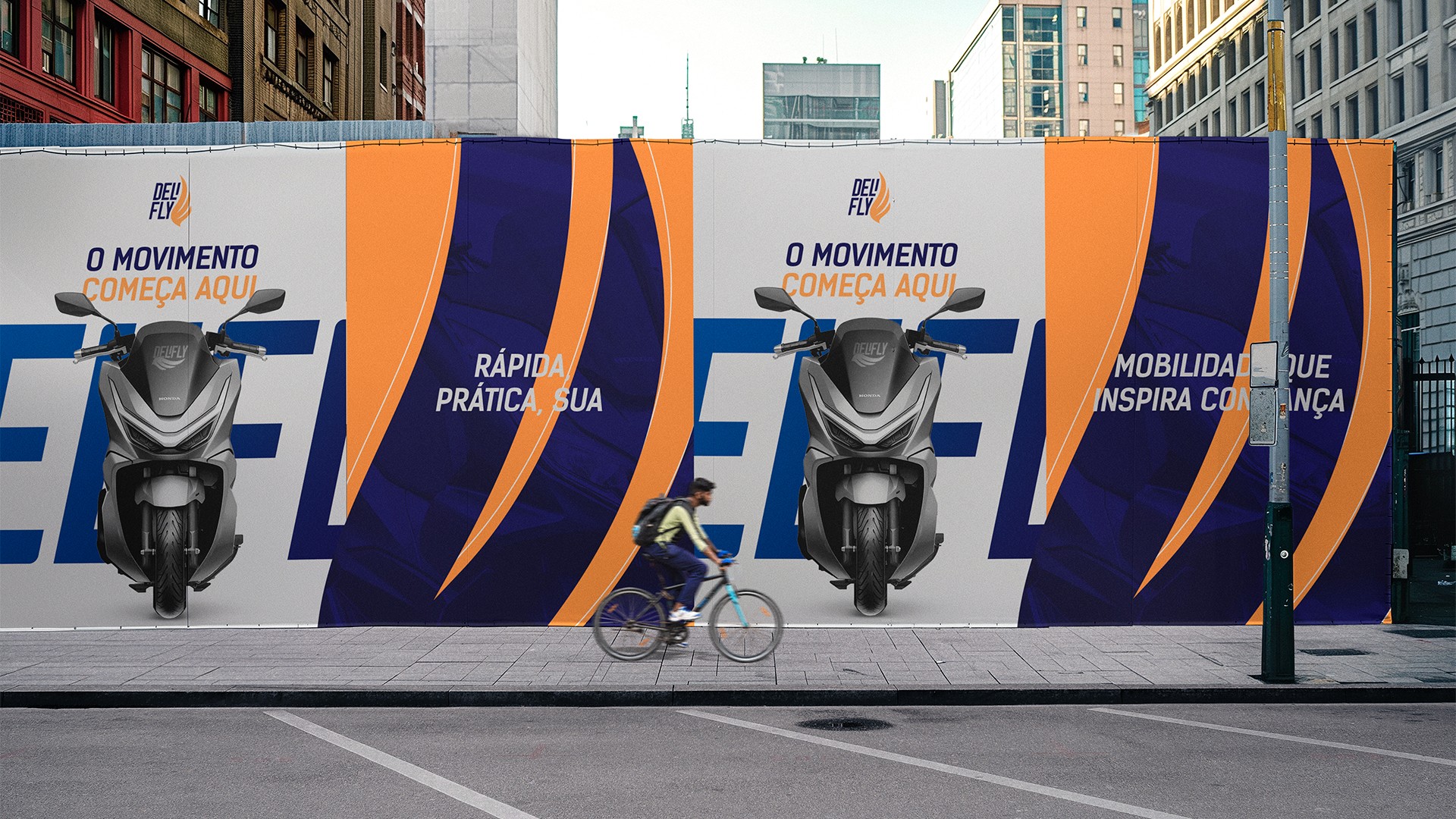 Força e Confiabilidade (Tipografia Condensada) O contraste entre as cores e o estilo tipográfico sólido reforça a imagem de uma empresa robusta e confiável. A Delifly se posiciona como uma parceira segura, que une energia e estabilidade em cada entrega.